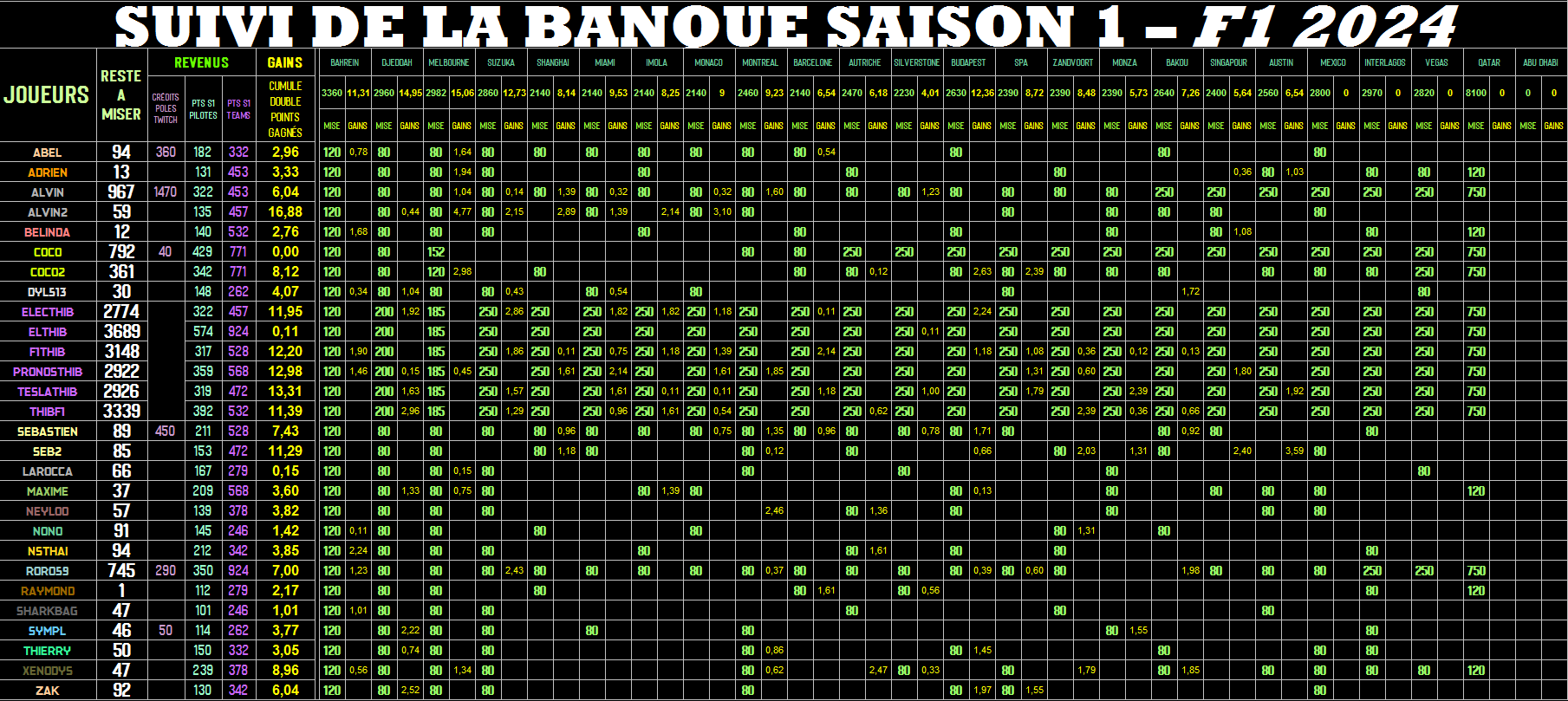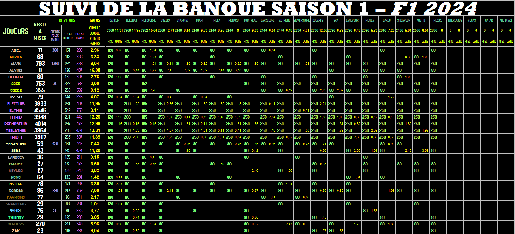 Posted: Mon Nov 04, 2024 9:48 pm Post subject: Re: Suivi des gains et dépenses |